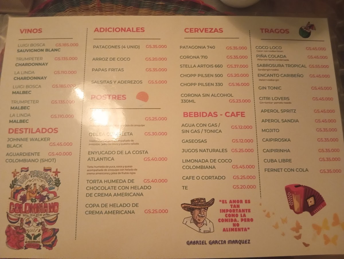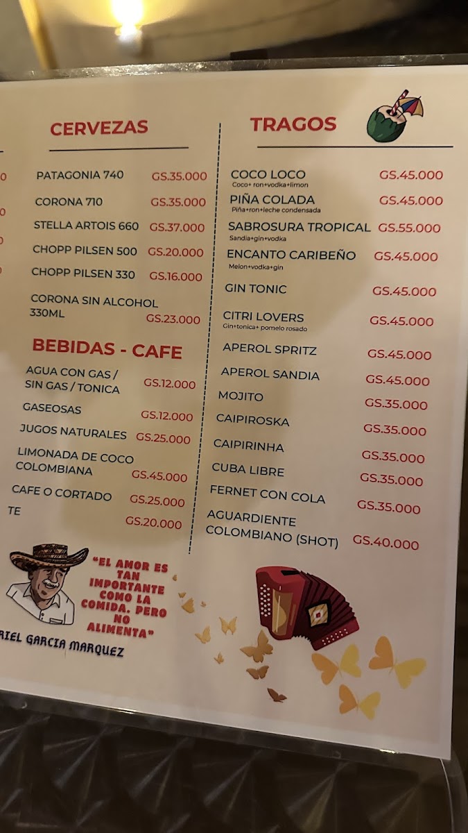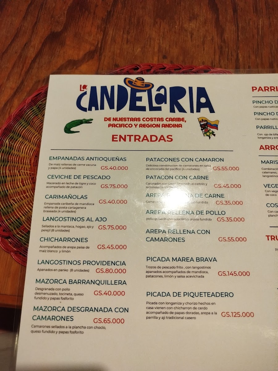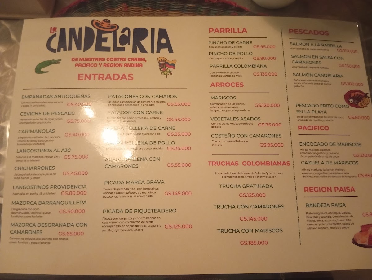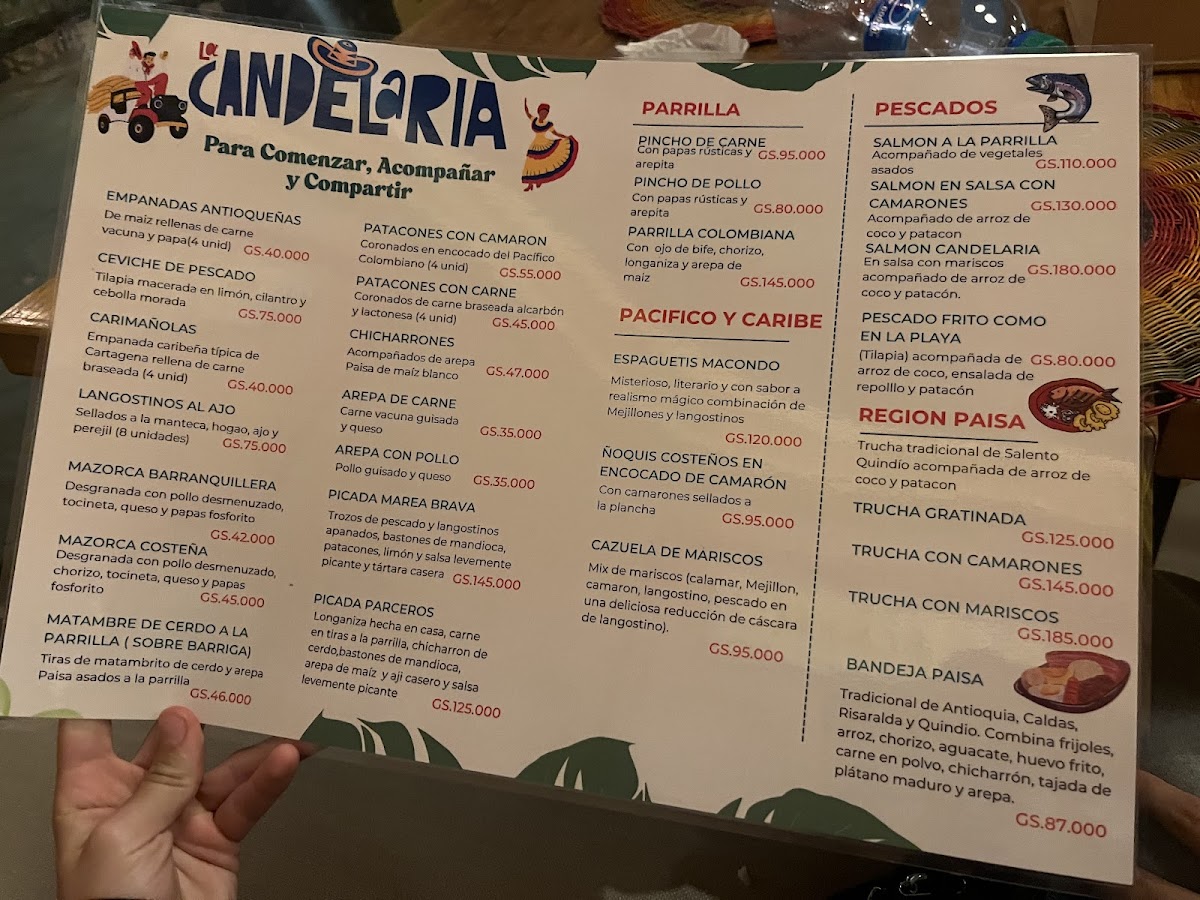 Welcome to Restaurante La Candelaria - Asuncion 001413, a charming culinary gem nestled in Asuncion, Paraguay. This vibrant eatery specializes in authentic Colombian cuisine, showcasing an array of flavors and textures that will transport your taste buds. Start your culinary adventure with the standout starters like pataconas with shrimp and arepas con carne, both bursting with fresh ingredients and zest. For mains, the expertly cooked fish served with creamy coconut rice is a testament to the chef's skill, offering a delicate balance of flavors that left one customer raving about its deliciousness. The atmosphere is complemented by traditional Colombian music and engaging performances that enhance your dining experience.